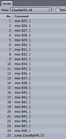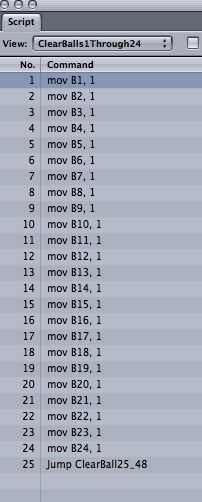 Start Game will have a button jumps to ClearBalls1Through24 which jumps through the rest of the clearing scripts as follows. When they are all cleared in Clear Ball73+ it jumps to the Shaker